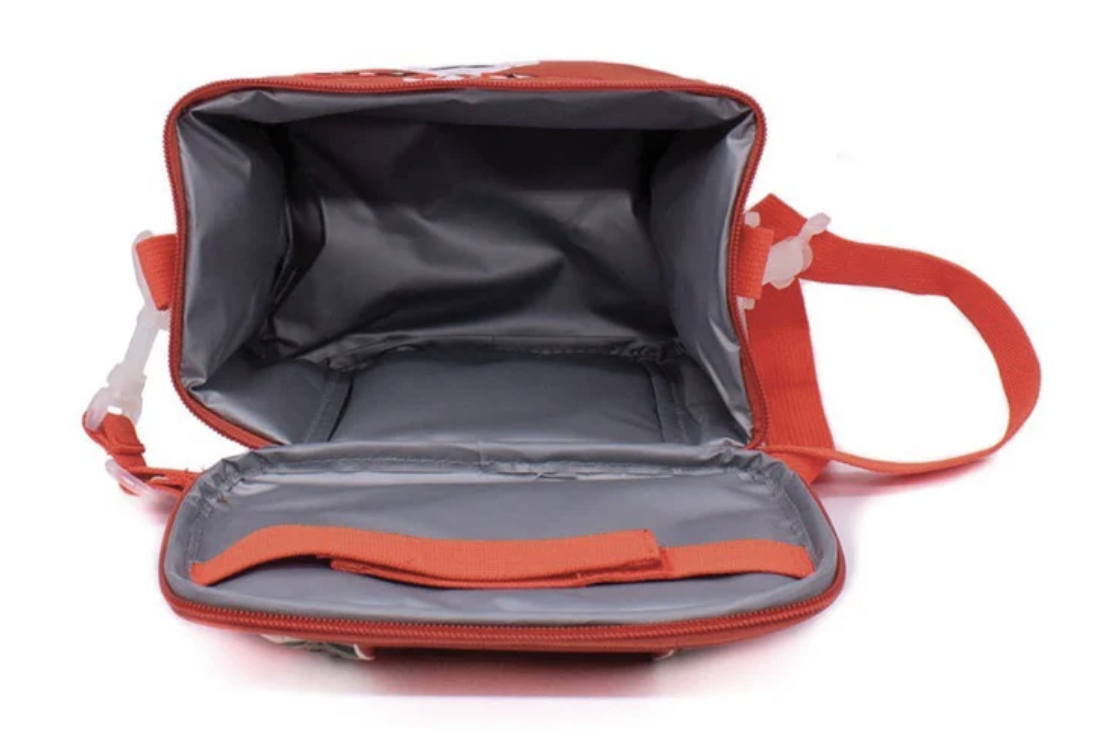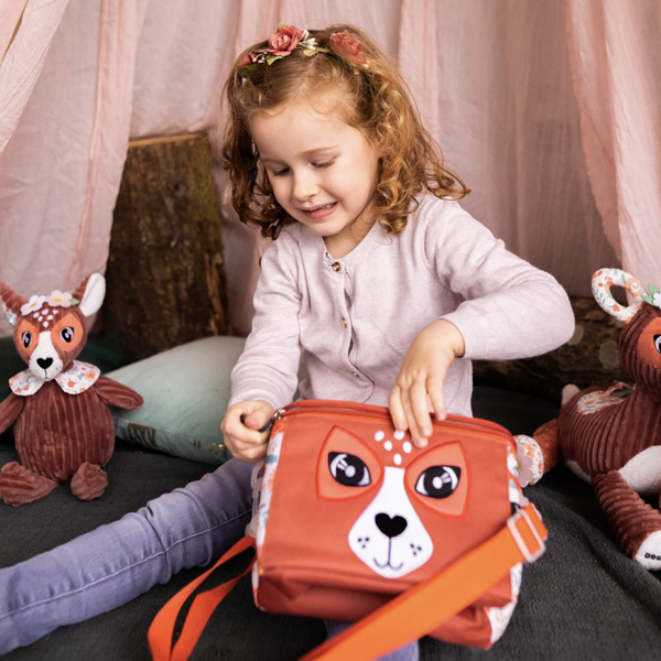 A l'effigie de Mélimélos la biche, le sac isotherme enfant est rouge terracotta et coloré.