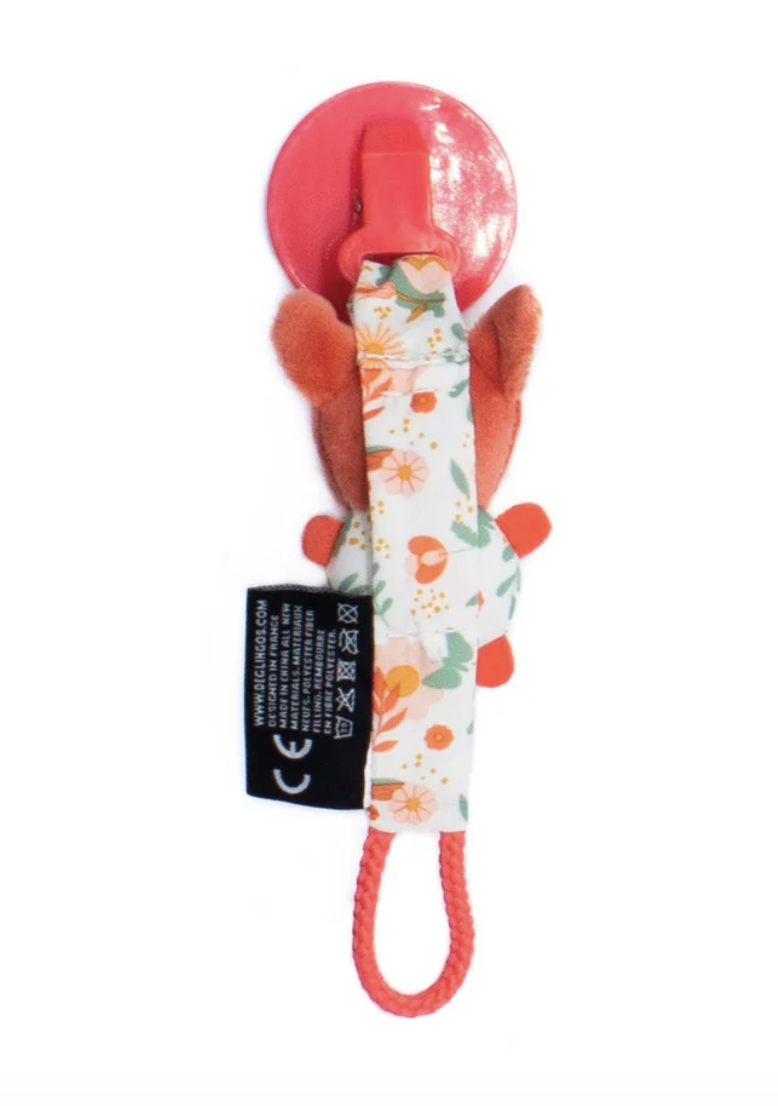 L'attache sucette Déglingos se fixe facilement sur les vêtements avec son clip en plastique pour une sucette toujours à portée de main ! Plus qu'un accessoire, l'attache sucette rouge Mélimélos la biche est dotée d'une petite peluche que bébé pourra manipuler à volonté !