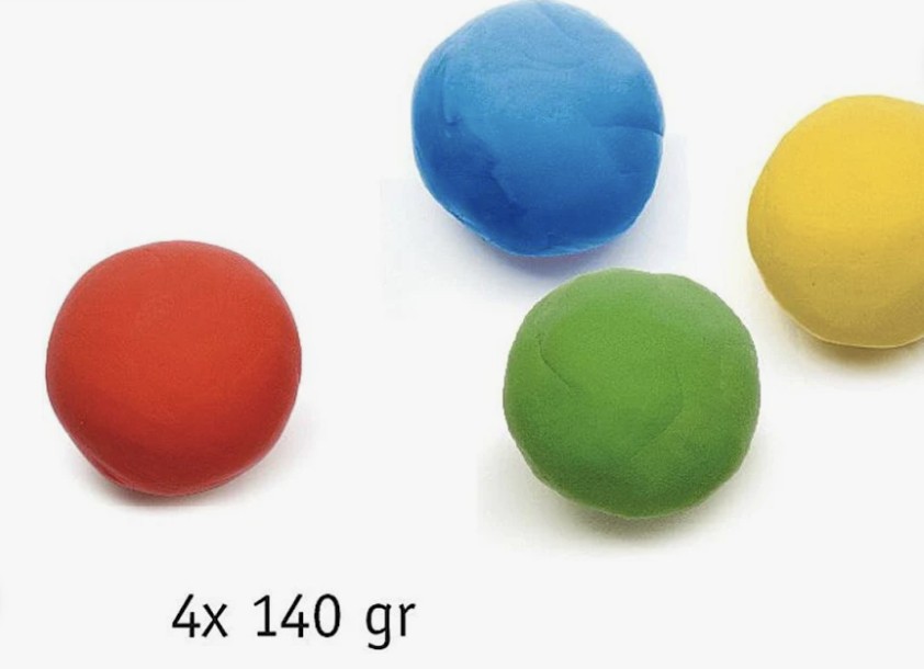 - Composé de 4 pots de 140 gr de pâte à modeler: rouge, bleu, vert et jaune