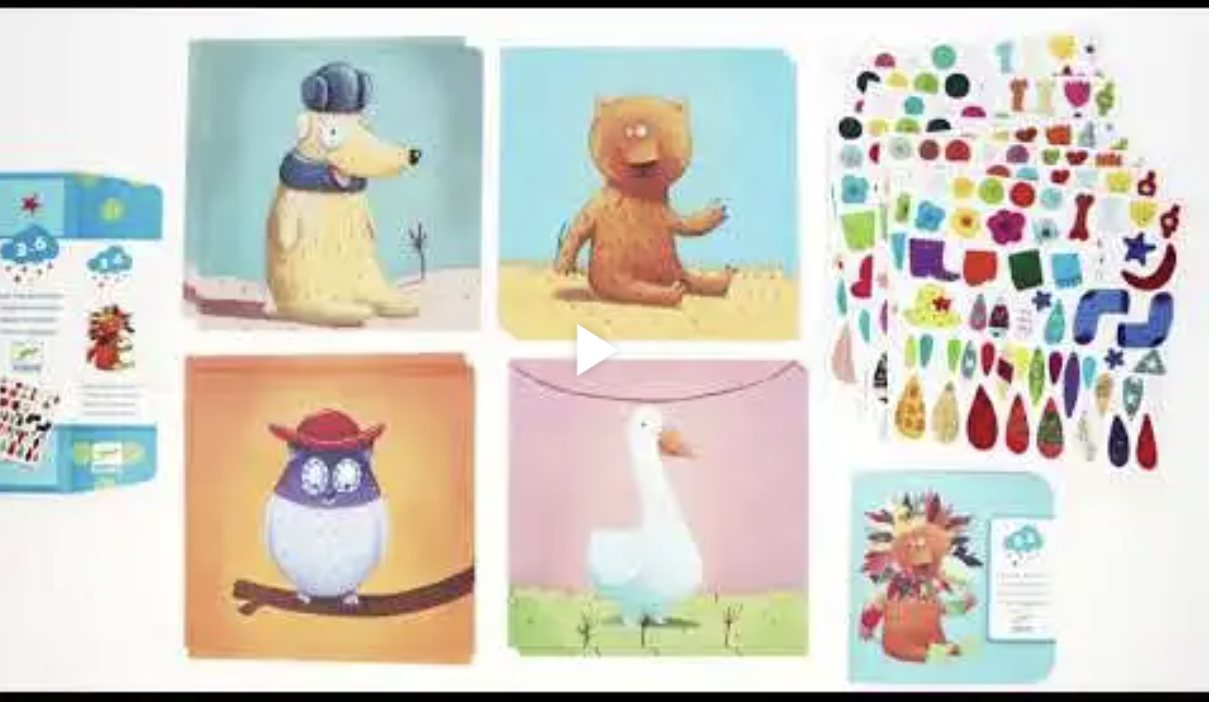 Une pochette de collage pour s'amuser à habiller des animaux avec de nombreux stickers colorés tous plus fantaisistes les uns que les autres. Contenu : 16 feuilles illustrées "animaux" (oie, ours, chien, chouette), 6 planches de stickers (+ de 400) et 1 livret explicatif pas à pas.