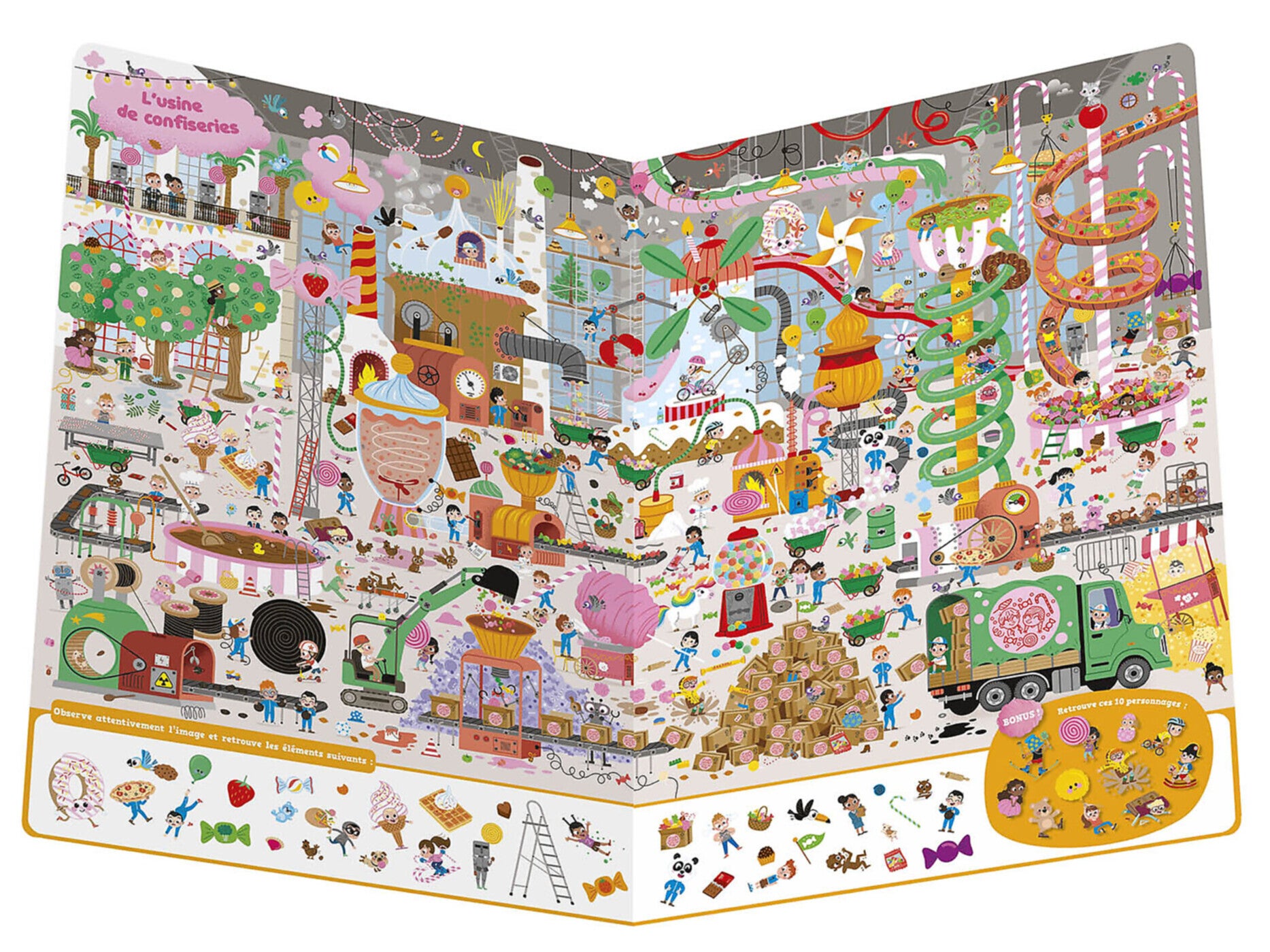Découvrez vite 9 univers colorés et détaillés, avec 50 éléments à retrouver sur chaque page, dont 10 personnages récurrents présents dans chaque spectacle.