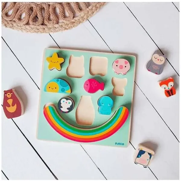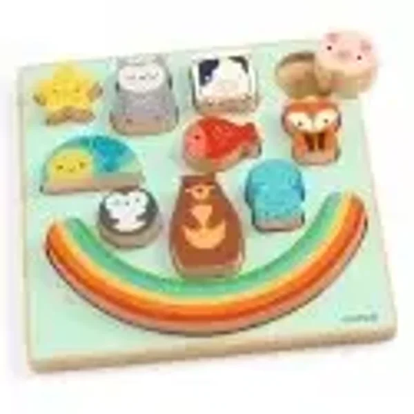 A la fois puzzle et jeu d'équilibre, le Puzz & Boom Rainbow de Djeco et ses animaux raviront votre enfant en améliorant son agilité. Dès 18 mois.