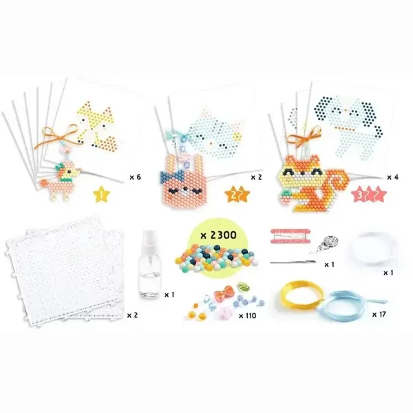 Réalise 12 modèles d'(animaux tous plus mignons les uns que les autres avec cette Aqua Box Fourrures et ces perles qui collent à l'eau! Dès 6 ans.