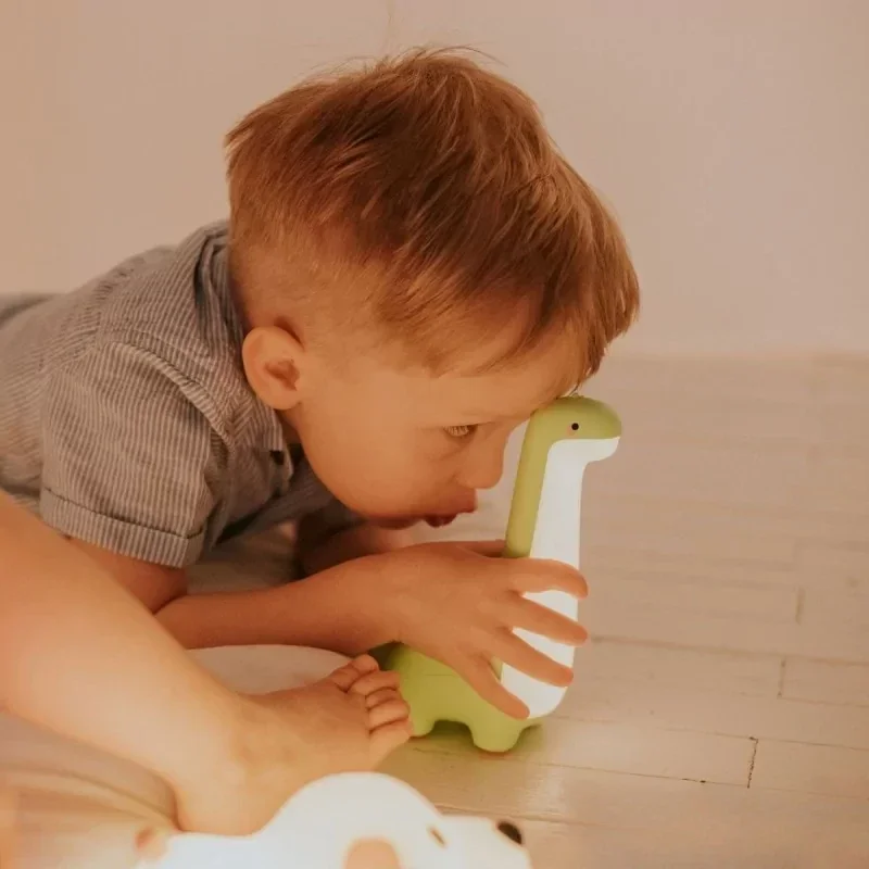 Existe-t-il un univers enfantin sans motifs de dinosaures ? Nous ne le pensons pas ! Mais d'où vient ce phénomène et pourquoi les enfants aiment-ils tant les dinosaures sous toutes leurs formes ? Les dinosaures ont quelque chose de mystérieux qui permet aux enfants d'explorer des couches d'imagination et de fascination pour un monde inconnu. Et comme nous le savons, il est toujours utile d'avoir une lampe à portée de main lors d’un voyage, même vers un monde imaginaire lointain. La lampe Dinosaur est parfaite pour ce rôle. Fabriquée en matériau durable et solide, cette lampe offre deux modes d'éclairage : haute et basse luminosité. De plus, elle est très légère, et sa forme pratique permet même aux bébés de moins d'un an de la saisir facilement. Un complément idéal pour la chambre d'un petit explorateur !